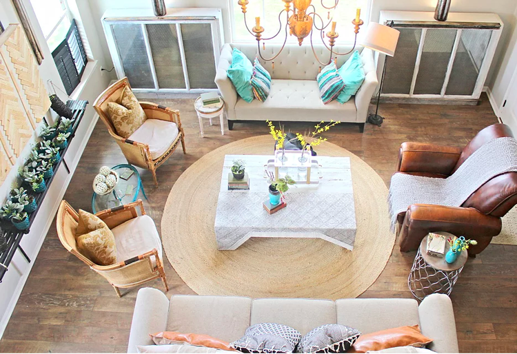 Just over a year ago. Husband-and-wife duo Amanda and Matt Whited decided to pursue a dream with Bell Station, specializing in design, decor and woodwork. Amanda, who previously worked as a corporate graphic designer for 13 years, developed a knack for painting murals as well as carefully choosing home decor, and decided to transfer her artistic talent into a passion project.   Matt and Amanda work together on their projects from start to finish, with Amanda as the creative lead and Matt working as the in-house woodworker and furniture-maker. They believe that a bit of creativity and design go a long way when turning a house into a home, and that the style should be reflective of who lives there. Amanda listens carefully to her clients and their preferences before making a plan, and of course they weigh in along the way. As for her inspiration? She says she can find it almost anywhere. "I once designed a room based on a tissue box," she explains. While each of Bell Station's projects are unique, they have one thing in common — careful craftsmanship. From color palette and proportion to wall hangings and lighting fixtures, each room is methodically put together. It's like each room is an art project reflective of its inhabitants. The couple's farmhouse in Stoutsville, Ohio, is a brilliant showcase of their design skills. The house is a new build on a 35 acre mini-farm that once belonged to Amanda's great grandfather — it doesn't get more charming than that! We spoke to her about the project, including her inspiration and the details you'll find throughout. Cutler: What were you aiming to accomplish with this project? Amanda: Our budget definitely drove the project. We wanted a fresh farmhouse style. Things always go a little bohemian when I'm decorating for myself. I like the farmhouse/boho combination. C: How did you choose the color palette for this project? A: Black and white are clean and timeless. I love the current teal/turquoise trend so I used those color accents. C: Who painted that gorgeous mural? A: I painted the mural in what we call the "art room". It's really my office, where I work on design and paintings. I like having whimsical little surprises in our home, like tacking a tree branch to the wall. C: What are the wooden elements you created in this project? Can you tell us a bit about them? A: Matt is a furniture maker. He built several pieces for the house. The master bath vanity we built uses wood from a fallen hog barn on the property. C: What Bell Station decor tips are you willing to share with our readers? A:  In the words of Billy Baldwin, "Stick to what you love — an honest room never goes out of style". Looking to revamp your house anytime soon? Bell Station offers the chance to test out their services with digital design boards. You send in the measurements and photos of the space you want designed, and they'll send back a full digital design complete with a color scheme, furniture placement, and a shopping list for home decor items. It's a risk-free way to test out their services, but we're sure you'll be impressed with the result!