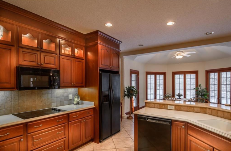 This cottage-style home looks like it was snagged straight from Pinterest. The 5-bedroom beauty covers more than 5,000 square feet, and includes seven fireplaces throughout, a custom designed, hand-dipped cedar shake roof, a spacious swimming pool, and a marble bath with steam shower. Plus, enjoy looking out at the 1.6-acre, wooded lot from the great room which is surrounded by three walls of windows.