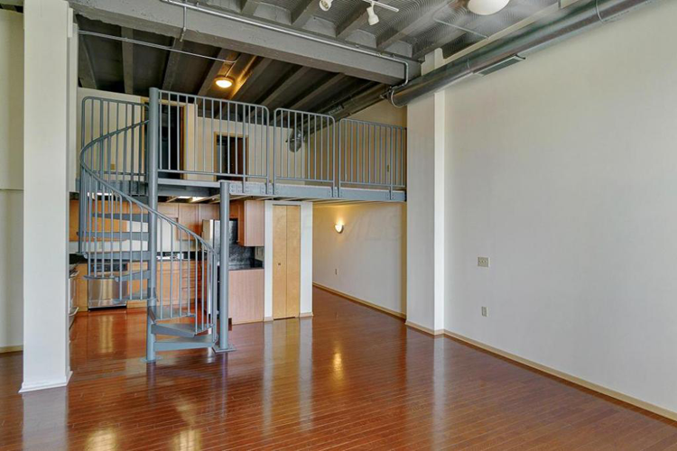 This loft space is perfect for those with a taste for a modern, industrial chic look. The unit includes exposed brick walls, reclaimed hickory floors, stainless steel appliances, cool black countertops and more — not to mention the abundant windows! The unit is a one bedroom with more than 1,000 square feet to spread out, so you'll have plenty of space. Additionally, you'll be able to enjoy views of the surrounding cityscape, lots of natural light, out-of-unit storage space, elevator access, and an in-unit laundry.