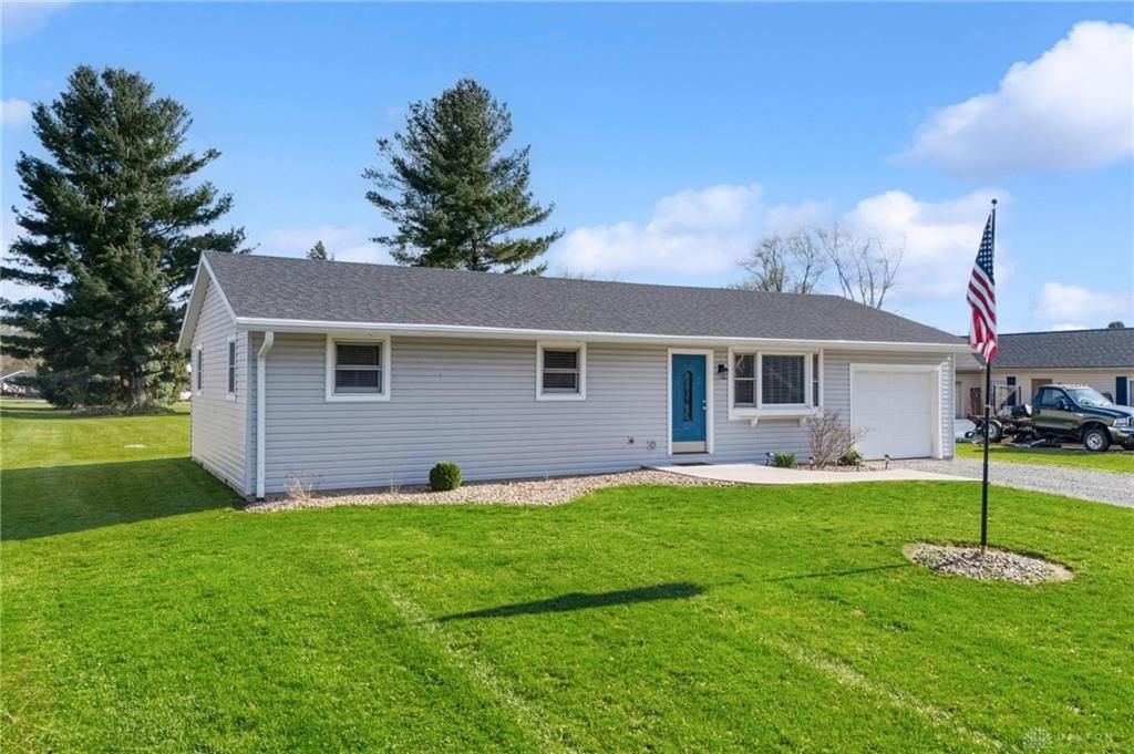 Discover comfort and convenience at 3959 Navajo TRL, New Jasper Twp, OH. This charming home features a well-maintained exterior with vinyl siding, a beautiful walkway, lush lawn, and attached garage. An inviting entrance leads to an open-concept living area, connecting the kitchen and living room. The living space boasts durable laminate flooring, replaced in 2022, ample natural light, and elegant recessed lighting. The heart of this home is a modern kitchen, complete with a central island, abundant cabinetry, and sleek appliances including a dishwasher, microwave, refrigerator, and range. This bright kitchen also offers convenient access to a dedicated laundry space. Large bay window enhances the family room, filling interiors with natural light. Outside, a well-maintained yard offers a comfortable patio area for outdoor enjoyment. Significant updates in 2022 include a new HVAC system, water heater, water softener, roof, gutters and downspouts, all new plumbing and electrical updates ensuring modern comfort and peace of mind. Additional entrance to property from Apache Trail.