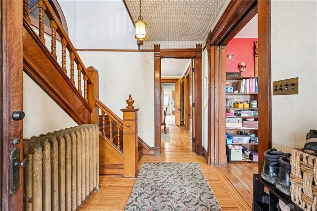 Step into timeless elegance with this Victorian-style home offering 3,481 square feet of preserved character and modern comfort. Featuring 4 bedrooms, 2 full bathrooms, and 1 half bath, this home also boasts a versatile third-floor bonus room that can serve as a 5th bedroom or creative space. From the moment you enter through the front door, you’re welcomed by an inviting foyer that sets the tone for the home’s historic charm. Original woodwork, pocket doors, and hardwood floors carry throughout the main level. The dining room showcases original built-in cabinetry, while the living room is highlighted by a beautiful stained glass window that adds character. The updated kitchen blends style and function with custom wood cabinetry, under-cabinet lighting, a custom tile backsplash, a pantry, and a central island that is perfect for meal prep or casual dining. Stainless steel appliances, including a gas range with kettle faucet and double oven, make this space ideal for everyday living. Upstairs, the primary suite offers a walk-in closet and an updated en-suite bathroom featuring both a soaking tub and walk-in shower. The second level also includes new carpet and padding throughout, along with a laundry room complete with a folding area, making everyday living easier with close proximity to the bedrooms. Outside, relax & enjoy the charm of a wrap-around porch with a cut limestone base and granite pillars. As well as garden boxes and fruit trees, 2-car detached garage with electricity, a 12x8 shed with power. Updates include; fully updated plumbing, 95% updated electrical, and a modern boiler and multi-zone heating system installed in 2024, a tankless on-demand water heater (2018), a new water softener (2025), and energy-efficient double/triple-pane insulated vinyl windows throughout. Heated floors in the kitchen and primary bathroom add a touch of luxury. A rare opportunity to own a beautifully maintained Victorian home where historic charm meets modern updates.